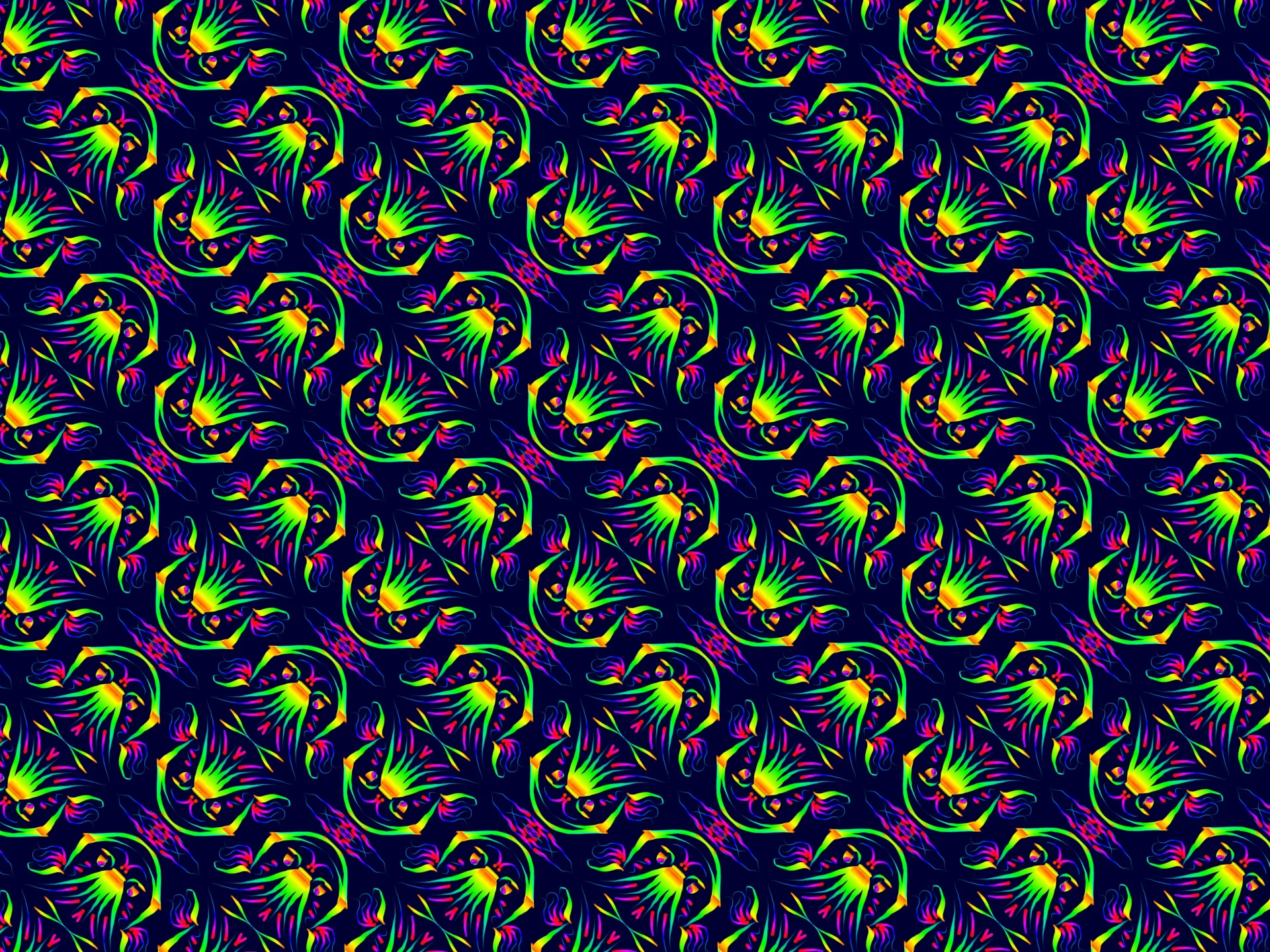 Neon-colored swirls and curved shapes in green, pink, and yellow dance across a black background. The abstract forms resemble fluid motion and give the design a vibrant and dynamic feel.
